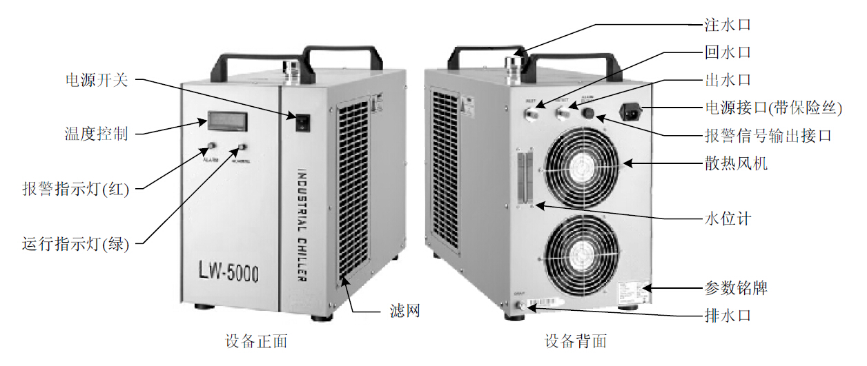 LW-5000系列工业冷水机包含输入输出控制设备开关以及冷却水流量、高低温报警的相关功能。性能稳定耐用,具有很高的性价比。
