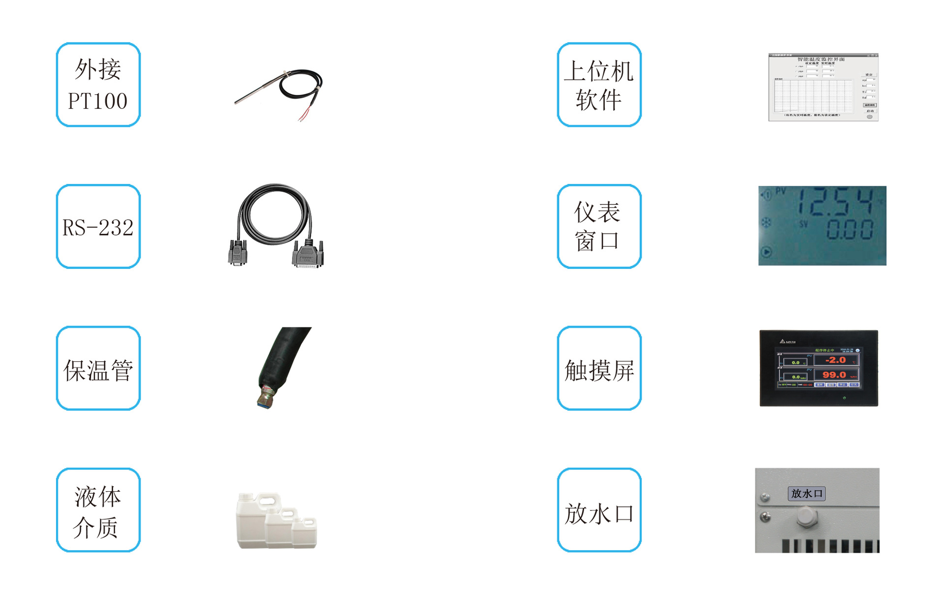 1. 可选配外接式PT100温度传感器,可实时检测和控制外循环时外部体系的温度。