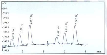 小检测浓度:Ne:0.18X10-6v/v  ;  O2: 0.09X10-6 v/v ;N2: 0.08X10-6v/v